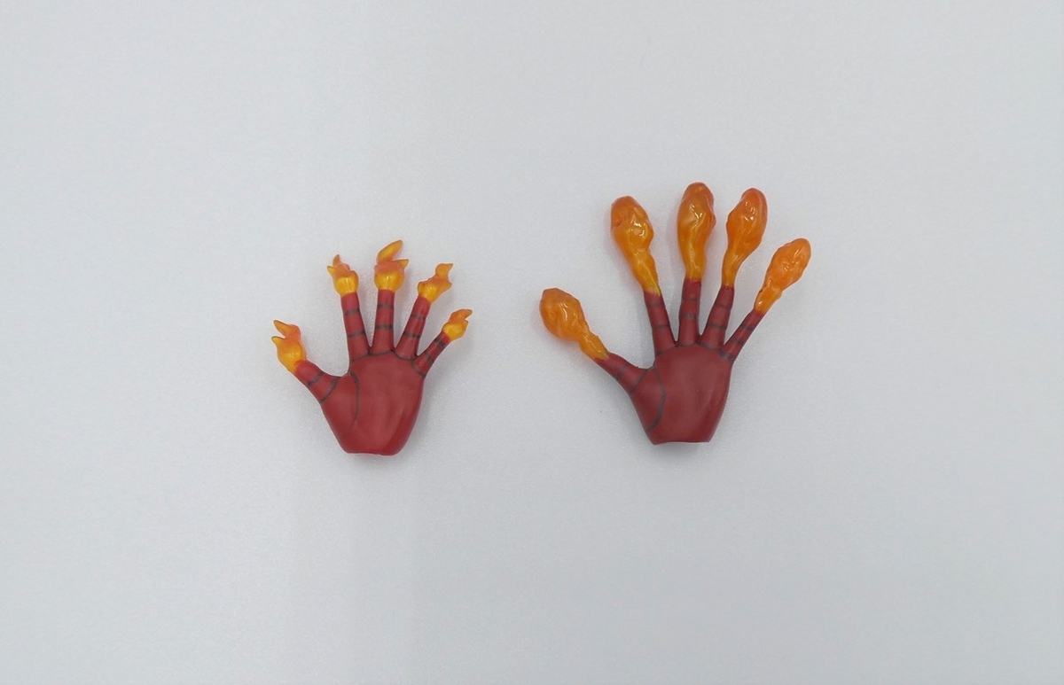 炎側の左手だけパーツが2つ多いです。