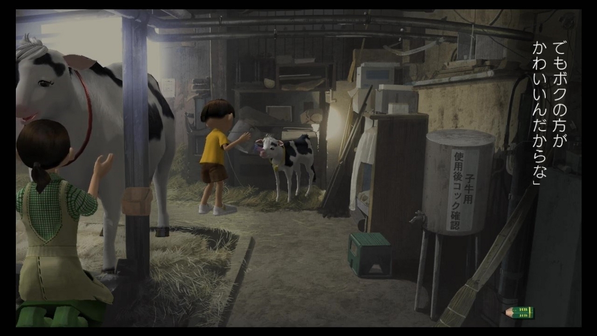 ブツブツ言いながら牛舎に行くと緑ちゃんがお手伝いしていました。