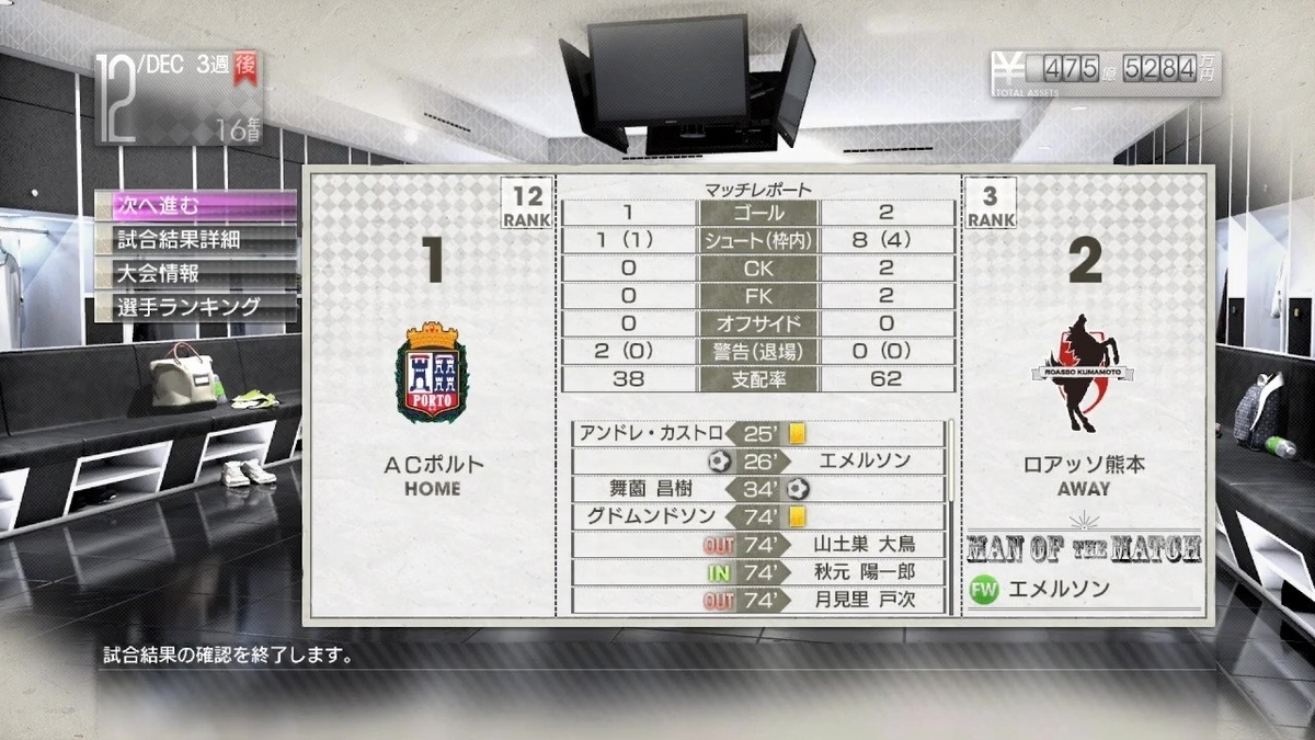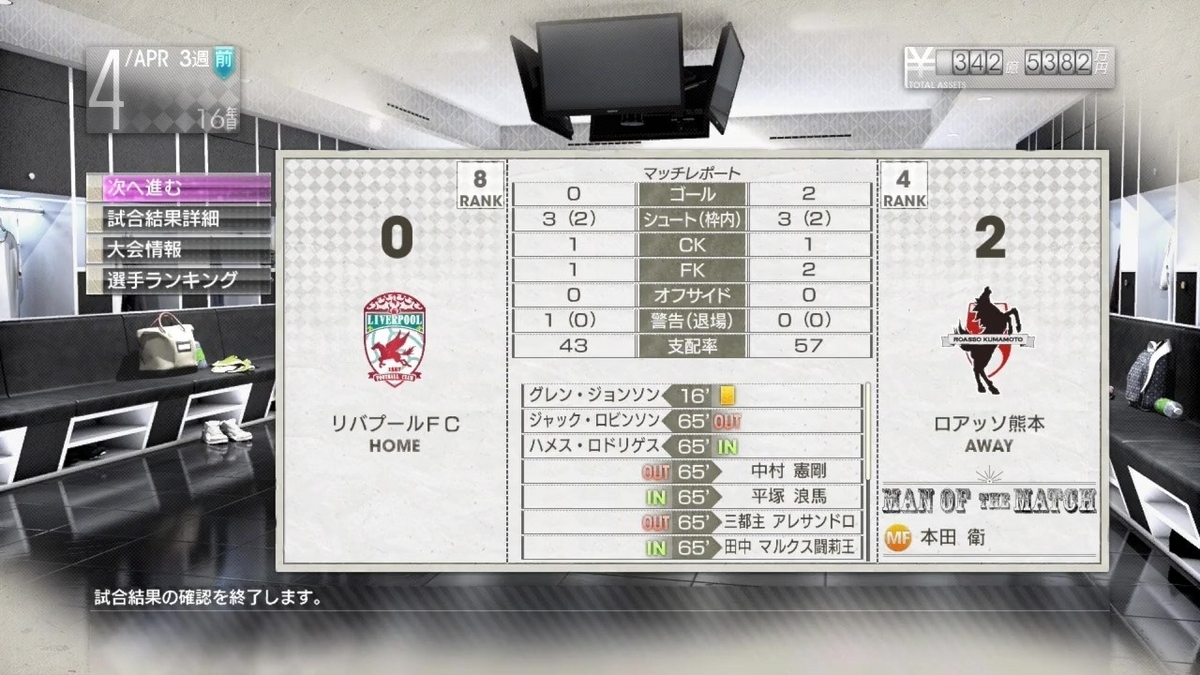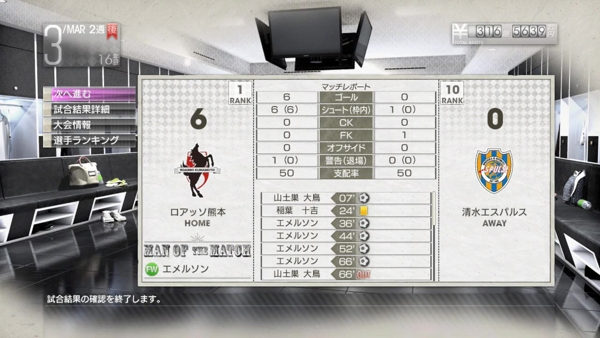 現実でロアッソ熊本がボロボロになりながらもヴィッセル神戸を倒すという奇跡を起こしてくれたので、こっちでも早く奇跡を起こさないととサカつく熱再燃です。