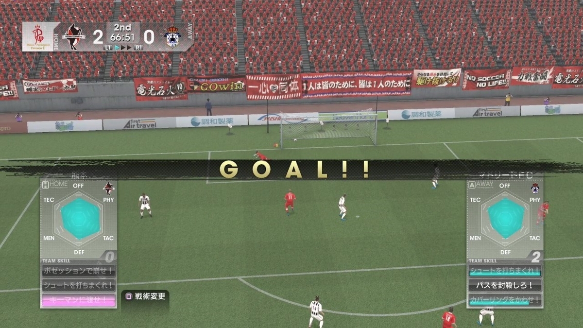 攻撃はエメルソンと三都主の得点力頼りな感じですね。