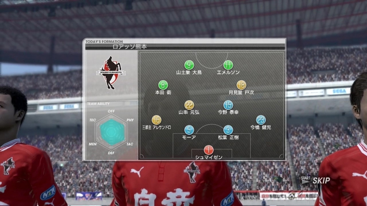 (たぶんスタメンを間違えて若手主体で戦っています)
