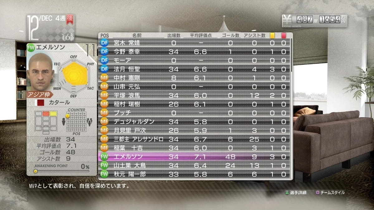 たぶんこのゲームの日本人最強FWなんじゃないでしょうか。